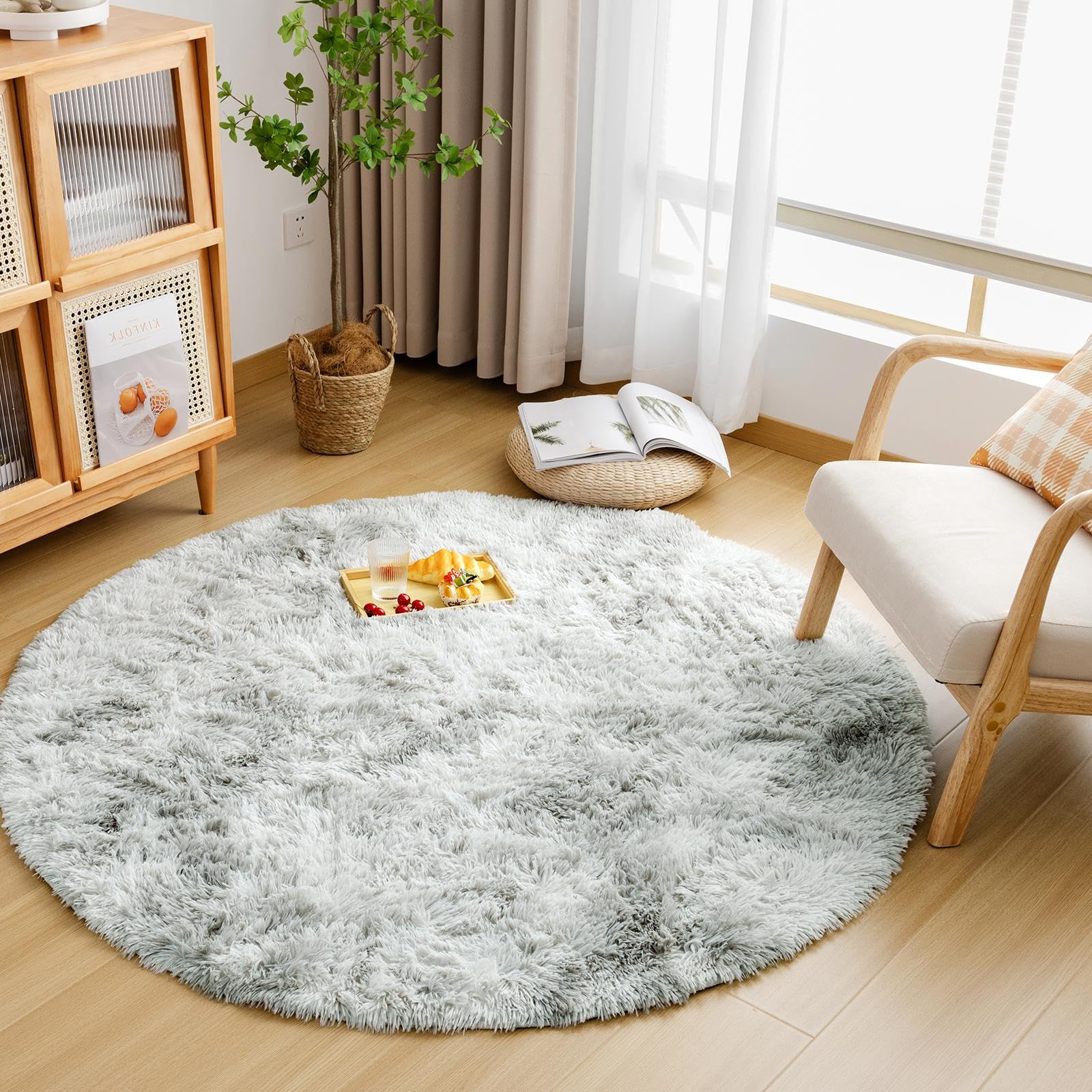 n Deco ラグ カーペット シャギーラグ 円形 直径150cm 洗えるラグ ラグマット 滑り止め 防音絨毯 ふわっと手触り オールシーズン
