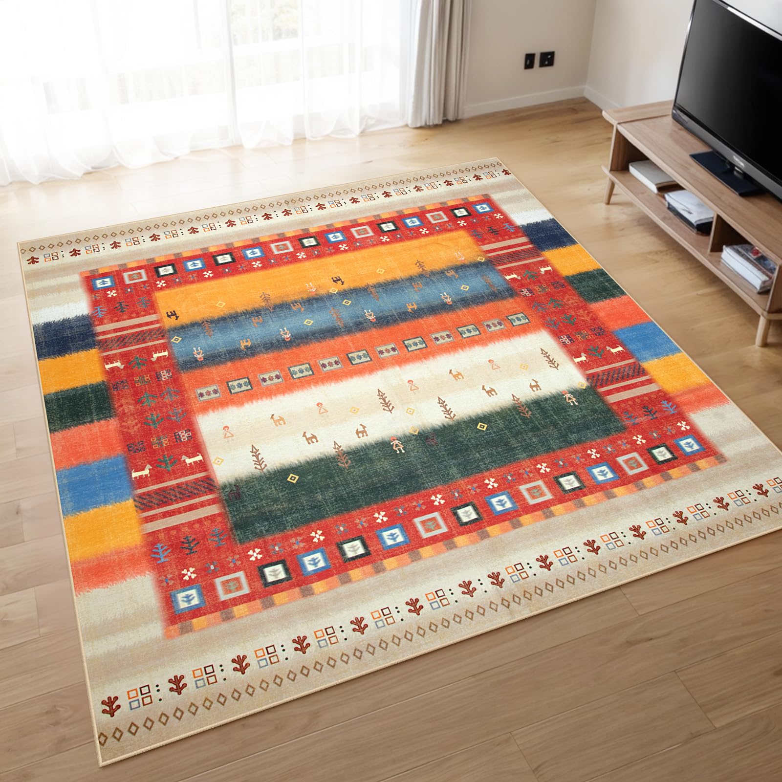 カーペット 2畳 185х185cm 正方形 ラグ 洗える エスニック風 民族 カーペット対応 滑り止め 幾何 防音 寝室 リビング シェニー